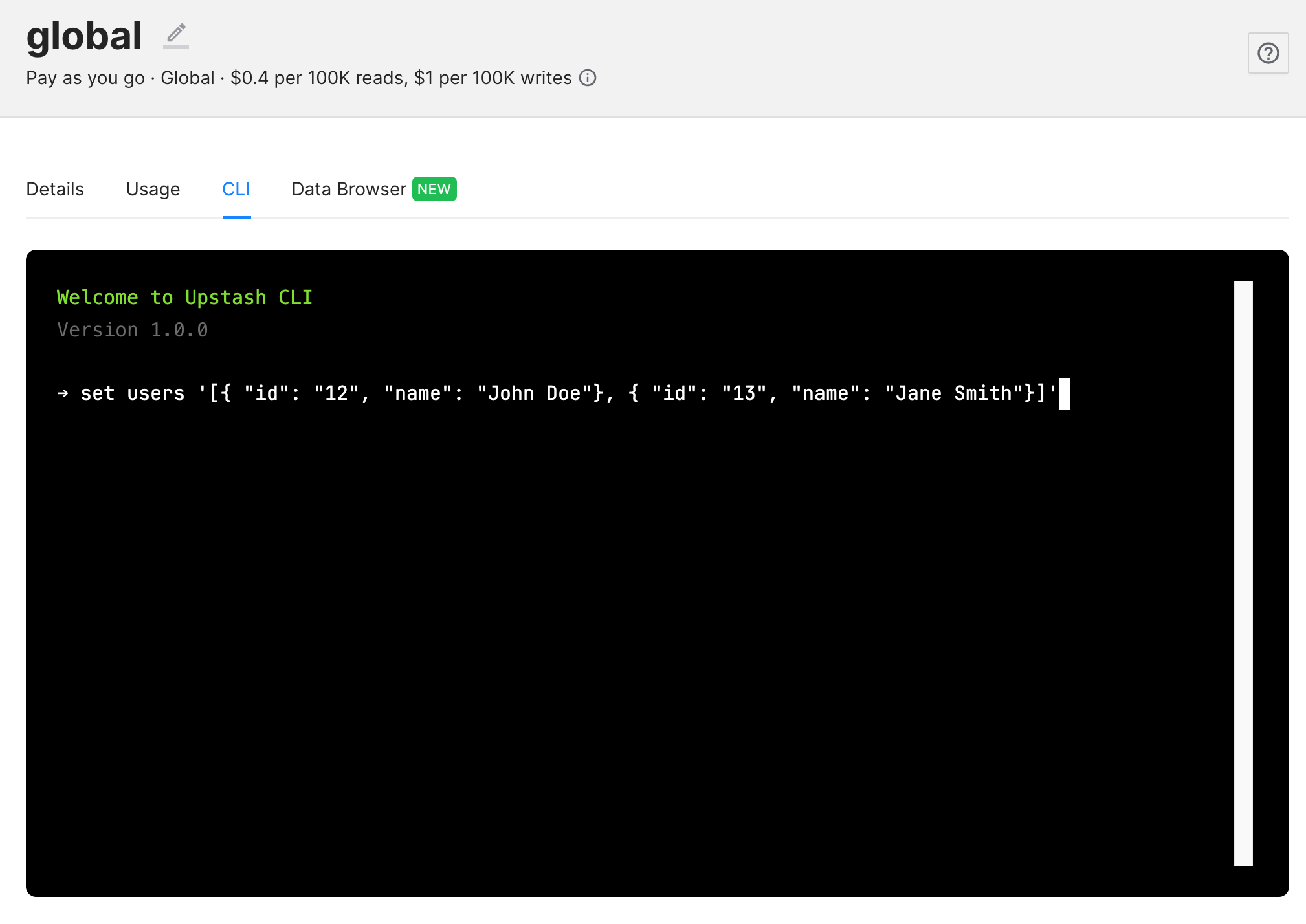 Create a Redis database using Upstash Console. Using the CLI insert users