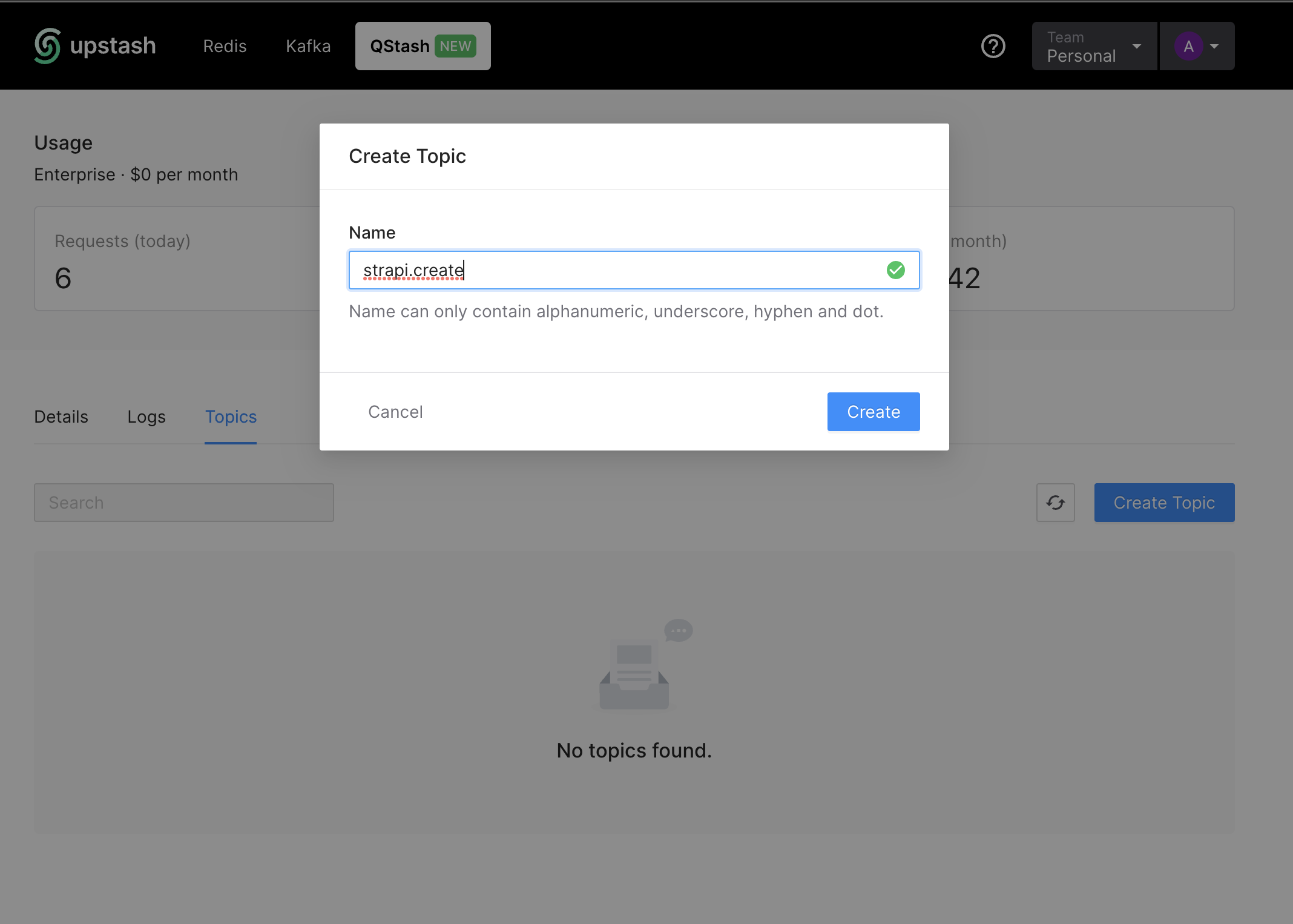 Replace the URL with https://qstash.upstash.io/v1/publish/strapi.create